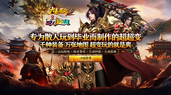 大秦霸业(玩界三刀超爽福利)打怪就给礼包币!礼包币=所有大陆礼包!三把大刀环绕自身,四倍打怪速度爽到爆!上线就送免费狂龙,免费仙尊,免费神霄,免费魔渊,免费礼包;本服特色:不卡大陆-毫无套路-时间=称霸服务器!千种装备万种地图,超变玩的就是爽爽爽爽爽!!!千种隐藏BUFF+武学+幻化+英魂+超多好玩玩法等你探索!上线直接爽!礼包直接拿!装备咔咔爆!玩服宗旨爽!!